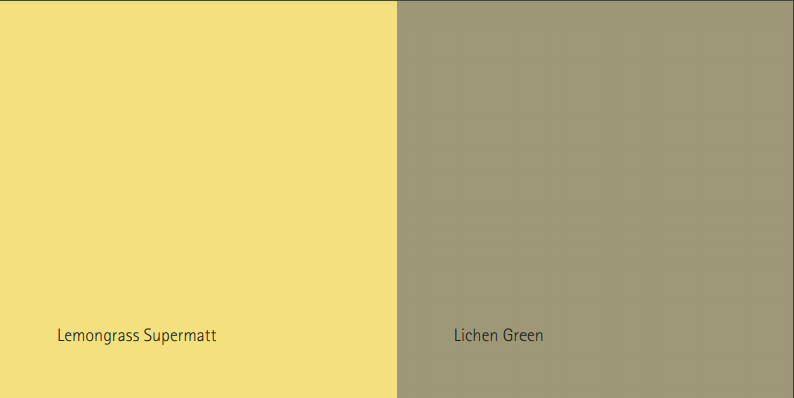 Lemongrass is an energizing accent in this combination, which fits perfectly with Lichten Green – inspired by the green of lichens. It provides a sense of peace and comfort, and adds noble simplicity and natural style to the interior.