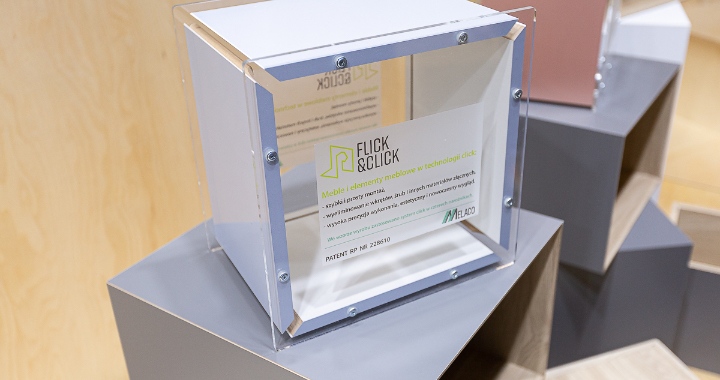 FLICK&CLICK™ is a patented technology (patent nos. 219311 and 228610) for the production of furniture parts with the THREESPINE™ mechanical locking system. Its secret lies in the simplicity of its assembly. No screws, pins, or tools are needed to assemble the furniture. There are no visible connections or openings that could disturb the esthetic appearance of the furniture.