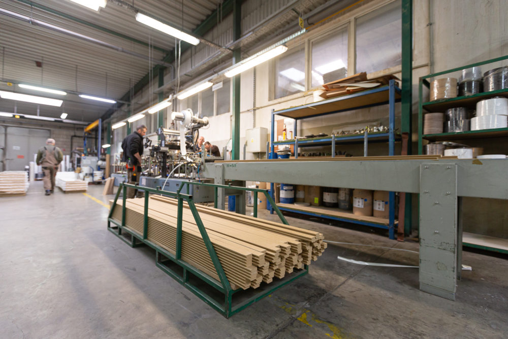 W procesie ciągłego opłaszczawiania wąskich elementów w technologii HOT MELT LAMINATION takich jak listwy, profile i panele na bazie płyt MDF lub wiórowych nakładany jest reaktywny klej PUR, a następnie nanoszona folia polimerowa PVC, PP, PET lub folia typu FINISH.